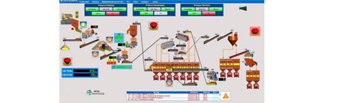 Se realiza mediante la programación de un sistema de control con PLC de primeras marcas, lo que permiten automatizar todo el proceso de producción: trituración, clasificación, pesaje…etc. Se trata de sistemas completamente configurables que se pueden adaptar a cualquier tipo de planta y permiten el interconexionado y control de todos los elementos que intervienen en el proceso (sensores, niveles, radares, sistemas de pesaje…).