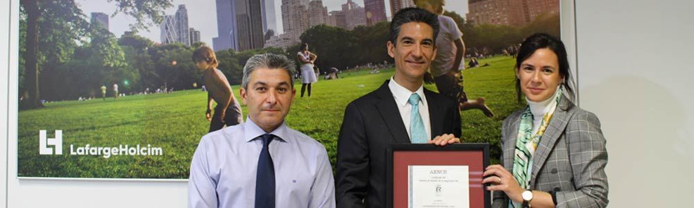LafargeHolcim ha obtenido la certificación de AENOR conforme a la norma internacional ISO 39001 que acredita sus buenas prácticas en la gestión de la Seguridad Vial, convirtiéndose así en la primera empresa del sector en España en recibir este reconocimiento. En el acto de entrega, celebrado en las oficinas de LafargeHolcim, Natalia Von Der Schmidt, responsable del Sistema de Gestión de la Seguridad Vial de la compañía, ha recibido la certificación de manos de Pablo Corróns, director de Marketing Sectorial y de Producto de AENOR, entidad de certificación de referencia en España.