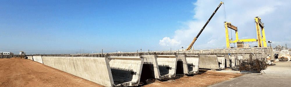 Dentro del alcance del suministro diseñado y fabricado por Moldtech, se incluyen dos líneas autoportantes completas que optimizan la fabricación de las vigas pretensadas Artesa ya mencionadas anteriormente. Estas 2 líneas de producción de vigas pretensadas constan de sendos cabezales activos y cabezales pasivos, situados en los extremos de la estructura autoportante correspondiente. Este sistema permite la producción de vigas pretensadas de tamaños importantes con gran precisión. Estas piezas prefabricadas son indispensables para el desarrollo de infraestructuras de transporte que requieren de gran resistencia y durabilidad.